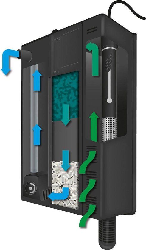 3-in-1 filter: binnenfilter, biologische filter en watercirculatie in één