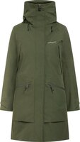 De Ilma Dames Parka van Didriksons is een vrouwelijke, wat langere klassieke dames parka. Gemaakt van een dun, zacht, soepel materiaal met een klassiek Didriksons uiterlijk. Het materiaal heeft een matte look. De ¾ lengte is ideaal voor dagelijks gebruik. De Ilma komt uitstekend tot zijn recht in de stad of op weg naar het werk, maar staat ook in de natuur zijn mannetje dankzij de goede materialen en het membraan in de jas. De volledige waterdichtheid en de ademende werking zorgen dat je geen regenjas nodig hebt, ook al zit het weer tegen. Alle naden zijn getapet en de parka is winddicht.Verstelbare vaste capuchon en is ergonomisch gesneden. Ook kan je de pasvorm aanpassen doordat je de jas kan stellen in het middel, aan de boord en mouwen. Tweewegritssluiting met voorflap en een hoge kraag. Aan de bovenzijde is de rits voorzien van een kin beschermer zodat de jas bij kou helemaal dichtgemaakt kan worden, zonder dat je kin of je sjaal ertussen zit. Vier voorzakken met rits net als twee binnenzakken waarvan een met rits wat de jas ook praktisch maakt. Reflecterende details op borst, schouder en linker heup. De jasvoering is geverfd met een speciale techniek. Deze techniek vermindert het verbruik van water, energie en chemicaliën tijdens de productie. PFC-vrije waterafstotende afwerking.