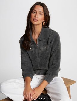 Dit Morgan De Toi vest in antracietgrijs combineert comfort met stijl. Het zachte, harige breisel voelt heerlijk aan en zorgt voor een luxe uitstraling. Het vest heeft een klassieke kraag, een rits aan de voorkant en twee decoratieve borstzakken met knoopdetail. Dankzij de mix van 61% polyamide en 39% polyester behoudt het vest zijn vorm en draagcomfort. Ideaal voor een casual-chique outfit, zowel overdag als ’s avonds.