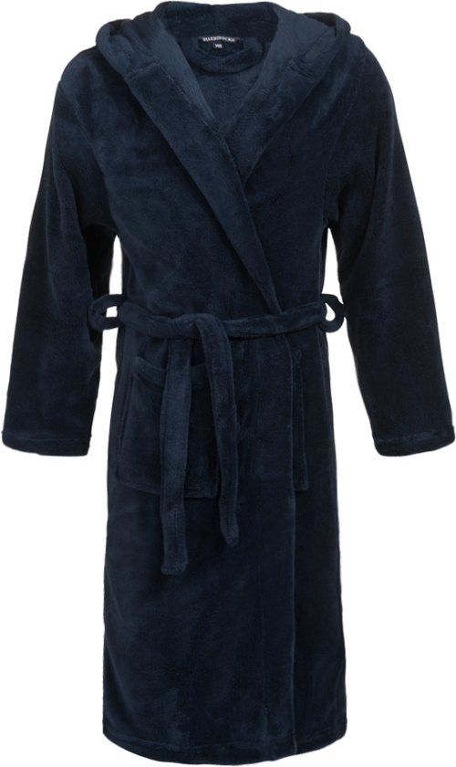 Badrock Flanel ochtendjas kinderen marineblauw capuchon maat 152/158 - Jurken