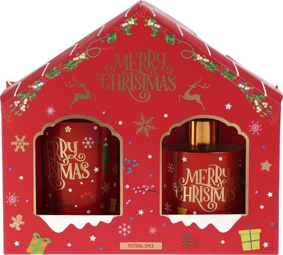 H@S Decoration Giftset - Candle - Aroma Diffuser - Christmas - Scented Candle - Fragrance Sticks - Red/Gold - 2 Pieces - 30 ml - Kaarsen
