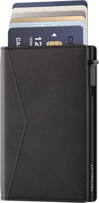 Prowallet Slim - Zwart - Pasjeshouder voor 8 pasjes en briefgeld - Uitschuifbaar - RFID Creditcardhouder - Kaarthouder Portemonnee, Premium Pashouder voor Mannen & Vrouwen - Aluminium, Kunstleer - Incl. Luxe Cadeaubox - Kaartdozen