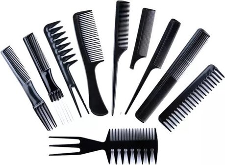 Kammen set - 10 stuks - Zwart - Gerecycled Plastic - Haarkammen