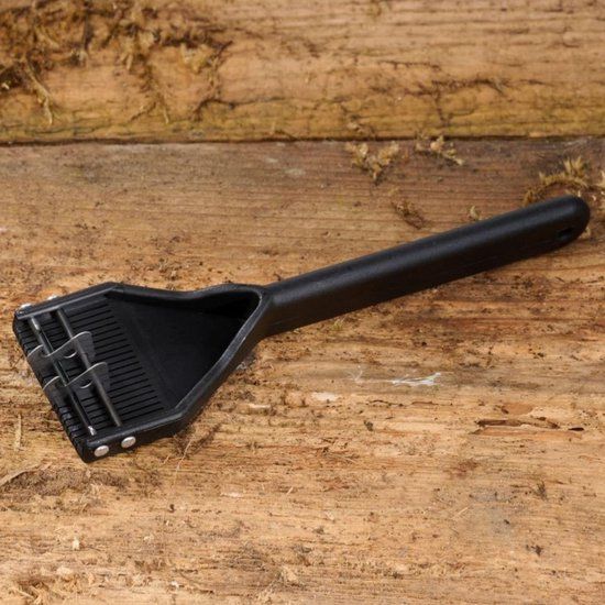 De Mars Coat King Home Detangle Brush Grof is een speciaal ontworpen trimhulpmiddel dat ideaal is voor het verwijderen van klitten en het ontwarren van de vacht van huisdieren. Dit hoogwaardige gereedschap maakt het snel en relatief pijnloos om klitten te verwijderen en losse haren uit te borstelen. De borstel is uitgerust met twee haakvormige messen, gemaakt van eersteklas roestvrij staal uit Solingen, Duitsland, en een duurzame kunststof handgreep.
