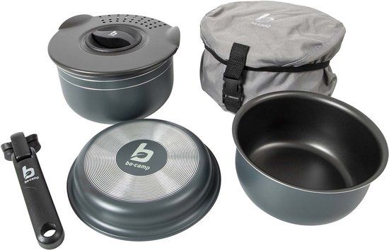 Bo-Camp Trekking Pannenset - 5-Delig - Aluminium - Antraciet - Kampeerpennen