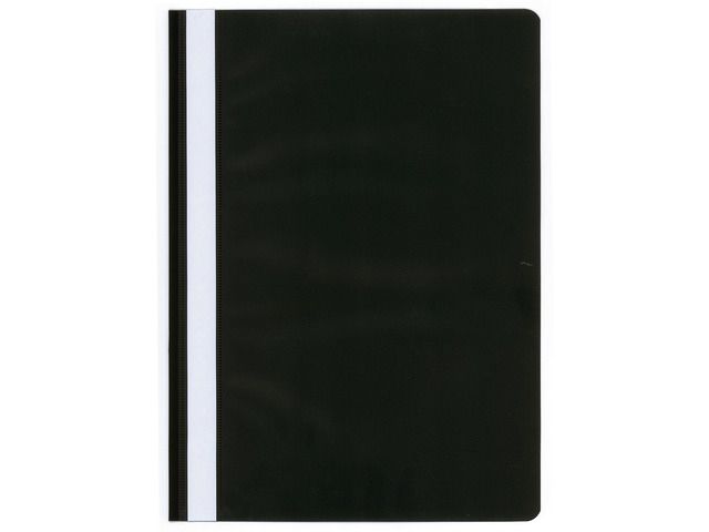 Lichte uitvoering snelhechtermap van PP. Voorzijde in helder transparant PP met een witte indicatiestrook over de volle hoogte. Achterzijde en rug in gekleurde folie. Leverbaar in 10 kleuren. Verpakt per 5 stuks in een krimp.