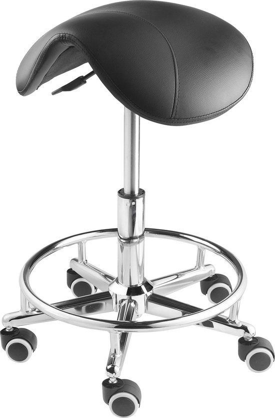 Zadelkruk met Voetring - Ergonomisch - In hoogte verstelbaar - Kunstleer - Chroom - Kantoorstoelen