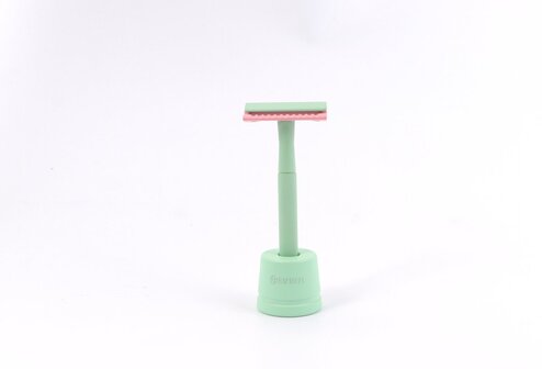 Bambooya Safety Razor + Houder + 20 Scheermesjes Bamboe Milieuvriendelijk Set - Minty Pink - Kappersscharen