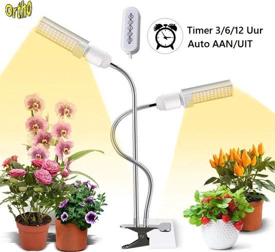 Ortho® LED Groeilamp - Wit licht - Bloeilamp - Full Spectrum - Met 2 Lampen - Flexibele Lamphouder - Kassen
