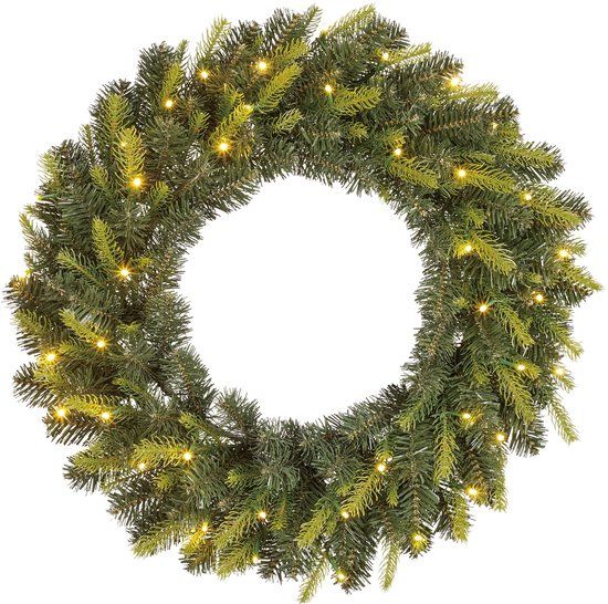 De Grimshaw kerstkrans met LED-verlichting van Black Box Trees is een stijlvolle klassieker voor wie houdt van een natuurlijke kerstlook. Deze royale krans is voorzien van 40 warm witte LED-lampjes die werken op 3 AA-batterijen, ideaal om hem overal op te hangen zonder stopcontact in de buurt. De buitenste takken zijn gemaakt van realistisch PE en voorgevormd naar het voorbeeld van echte dennennaalden, terwijl de binnenzijde is opgevuld met zachte PVC-naaldjes die zorgen voor een volle en levendige uitstraling. Hang hem aan de voordeur, boven de haard of gebruik hem liggend met een windlicht of linten als blikvanger op tafel. Dit model is H15 x Ø60 cm en wordt geleverd met 2 jaar garantie op de krans en de verlichting. Waar geef jij deze tijdloze krans een mooie plek?