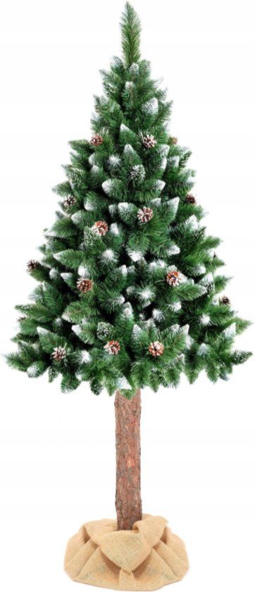 Deze kunstkerstboom houdt zelfs uw gasten voor de gek, door de hoge naalddichtheid. Het lijkt daardoor een echte kerstboom. U hoeft niet meer elk jaar een nieuwe kerstboom te kopen. Door de houten stam lijkt het nog realistischer. En het is versierd met sneeuw en dennenappels. De houten stam komt rechtstreeks uit het bos!