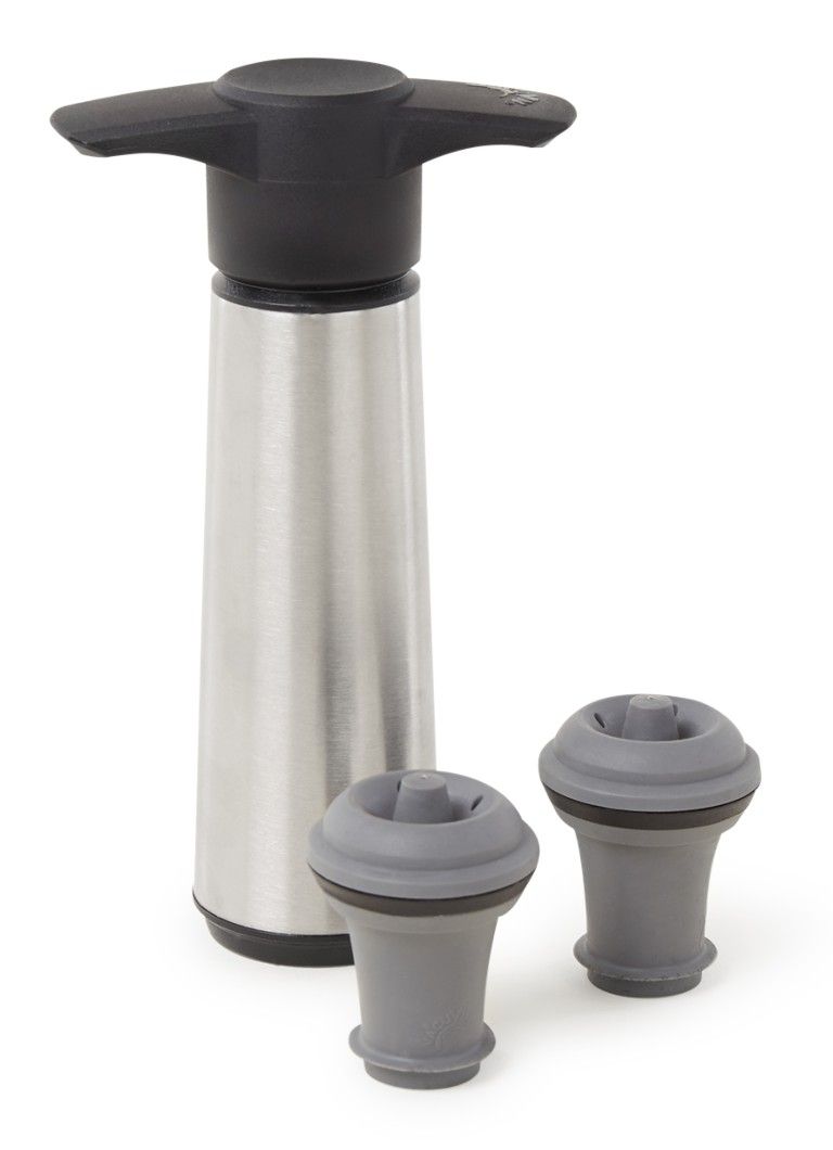 Met de wijnstopper van Vacu Vin worden de aroma's van wijn zo lang en goed mogelijk bewaard. Het zilveren ontwerp beschikt over een vacuümindicator. Door de stopper op de fles te plaatsen en te drukken tot je een klik hoort is de vacuüm bereikt. Vervolgens blijft de wijn gesloten met één van de twee bijgeleverde doppen. Niet geschikt voor mousserende wijnen.