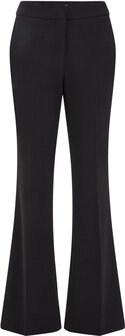 Dit item is een modieuze knipoog naar 'je beste beentje voorzetten'. Deze flared pantalon is nauwsluitend van boven, uitlopend onder, met vouwlijnen, zakken en een haaksluiting. Indruk maken? De broek doet het werk wel voor je.