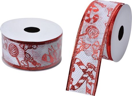Clayre & Eef Kerstlint 38 mm Wit - Rood - Synthetisch - Kledingnaaimaterialen