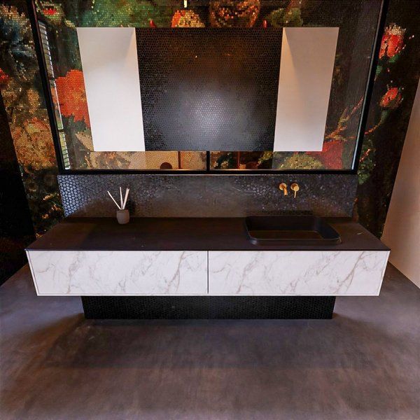 Bekijk productMondiaz ERIN 200cm badmeubelset onderkast carrara met 2 lades Wastafel RIDGE rechts zonder kraangaten Urban ERIN11492 - Kleine buffetten