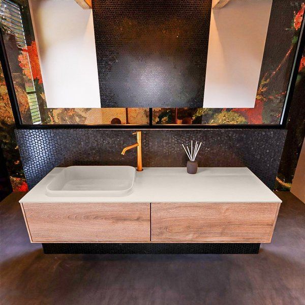 Bekijk productMondiaz ERIN 150cm badmeubelset - Washed oak - 2 lades - RIDGE wastafel links - Linen - Kleine buffetten
