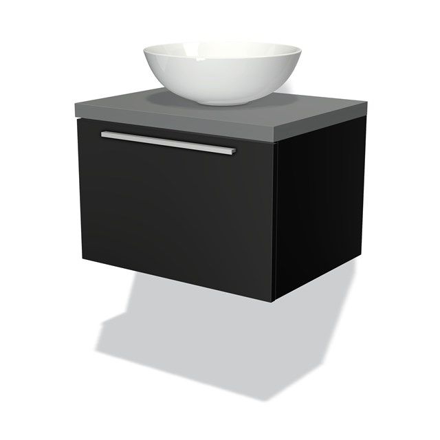 Maxaro Badkamermeubel Modulo Plato 60cm Mat Zwart 1 Lade Middengrijs Blad - Kleine buffetten