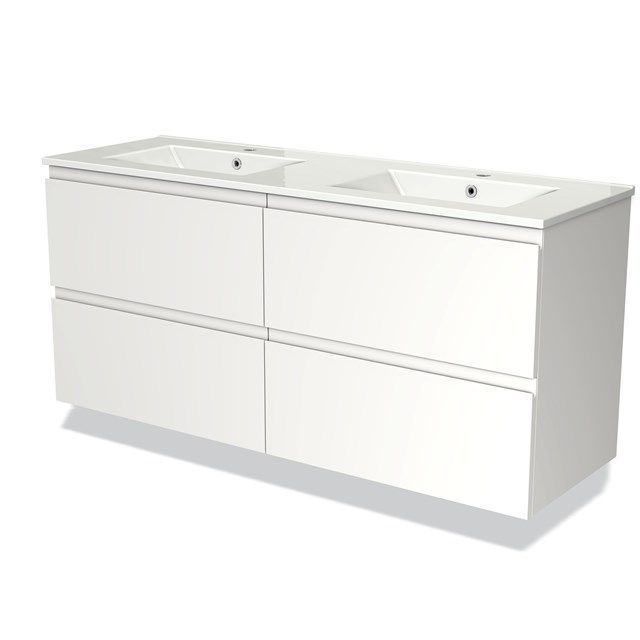 Bekijk productMaxaro Badkamermeubel 140cm Modulo Mat Wit 4 Lades Greeploos Wastafel Keramiek - Kleine buffetten