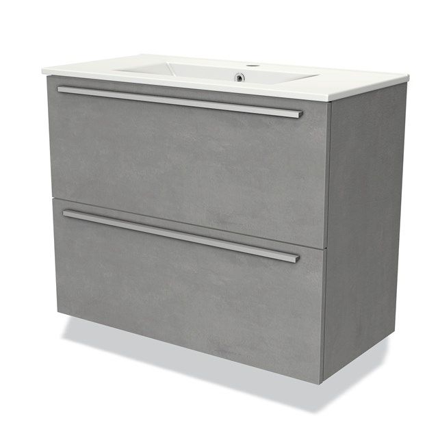 Bekijk productMaxaro Badkamermeubel 80cm Modulo Slim Lichtgrijs Beton 2 Lades Vlak Wastafel Keramiek - Kleine buffetten