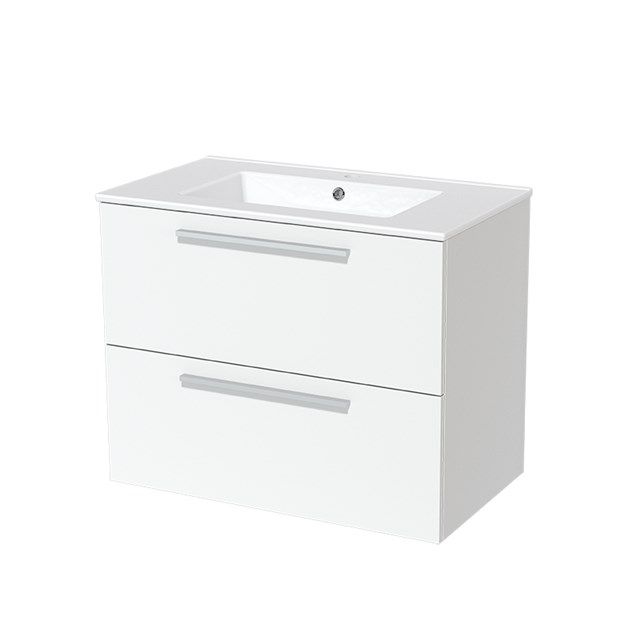 Bekijk productMaxaro Badkamermeubel 80cm Modulo Mat Wit 2 Lades Vlak Wastafel Keramiek - Kleine buffetten