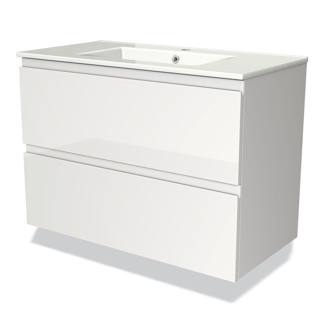 Maxaro Badkamermeubel 90cm Modulo Hoogglans Wit 2 Lades Greeploos Wastafel Keramiek - Kleine buffetten