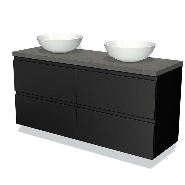Maxaro Badkamermeubel Modulo Plato 140cm Mat Zwart 4 Lades Greeploos Donkergrijs Beton - Kleine buffetten