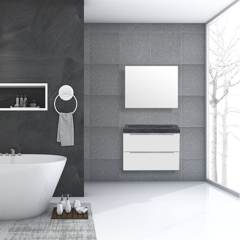 Bekijk productBadkamerplanet Badkamermeubel Sensio Natuursteen 80 cm Hoogglans Wit met Spiegel - Kleine buffetten