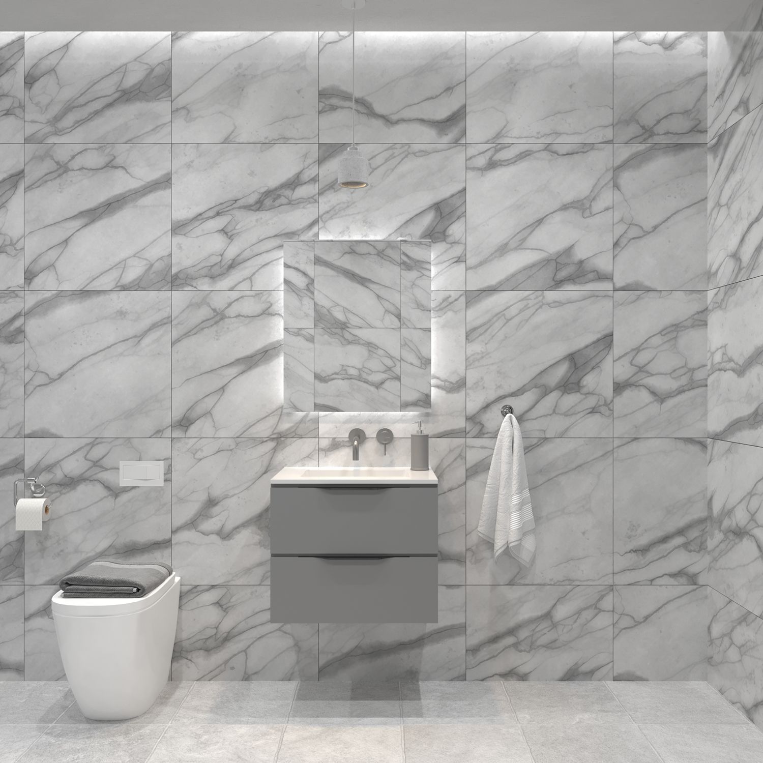 Gliss Design Badkamermeubelset Hera Mat Zwart 70 cm 2 Laden Beton Grijs Mat (keuze wastafel) - Kleine buffetten