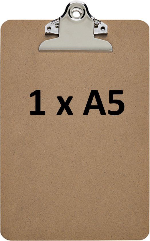 - Stable design clipboard made of hard fibre with nostalgic clip\n- Also ideally suited for menus, display windows or reception areas\n- Solid retro inspired steel clip with strong steel spring\n- Comfortable: paper stop at the top\n- Trendy design for price-conscious customers\n- Untreated board surface for natural look\n- Convenient: can be hung up\n- Gentle: rounded edges\n- Clip opening approx. 1,5 cm (A5) and 2,5 cm (A4 and A3)\n- Board thickness 0,3 cm\n- Can be recycled