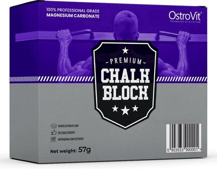OstroVit Chalk Block het is niets anders dan magnesiumoxide in een kubus. Een product dat uw grip zal verbeteren. Het is voldoende om de benodigde hoeveelheid in kleinere porties te breken en deze over uw handen te wrijven om de grip tijdens zware trainingssessies op bars, bars of sportschool aanzienlijk te verbeteren. Deze vorm van geperst magnesiumoxide sproeit niet, wat het grote voordeel is.