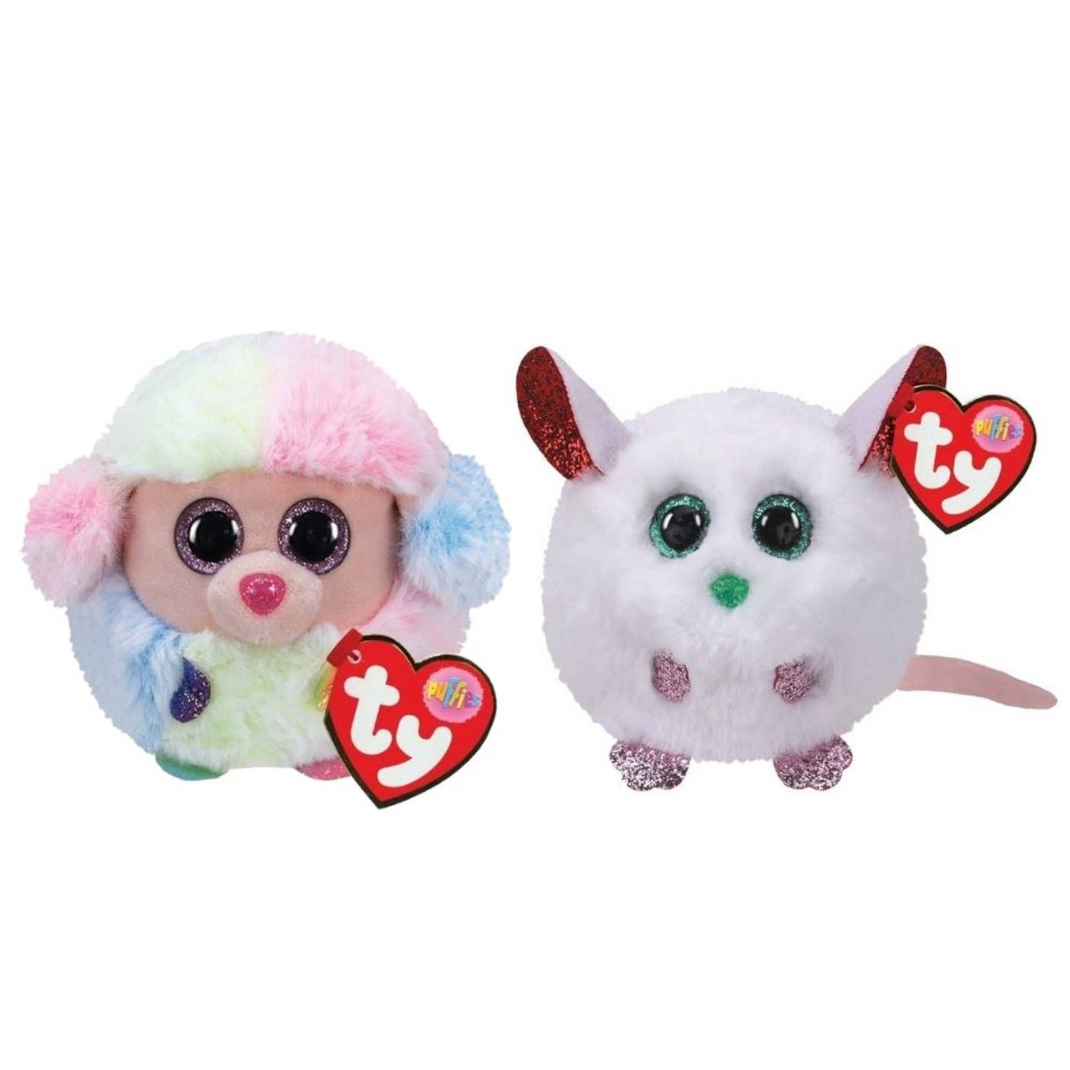 TY - Knuffel - Teeny Puffies - Rainbow Poodle & Christmas Mouse - Meerkleurig - Knuffelspeelgoed