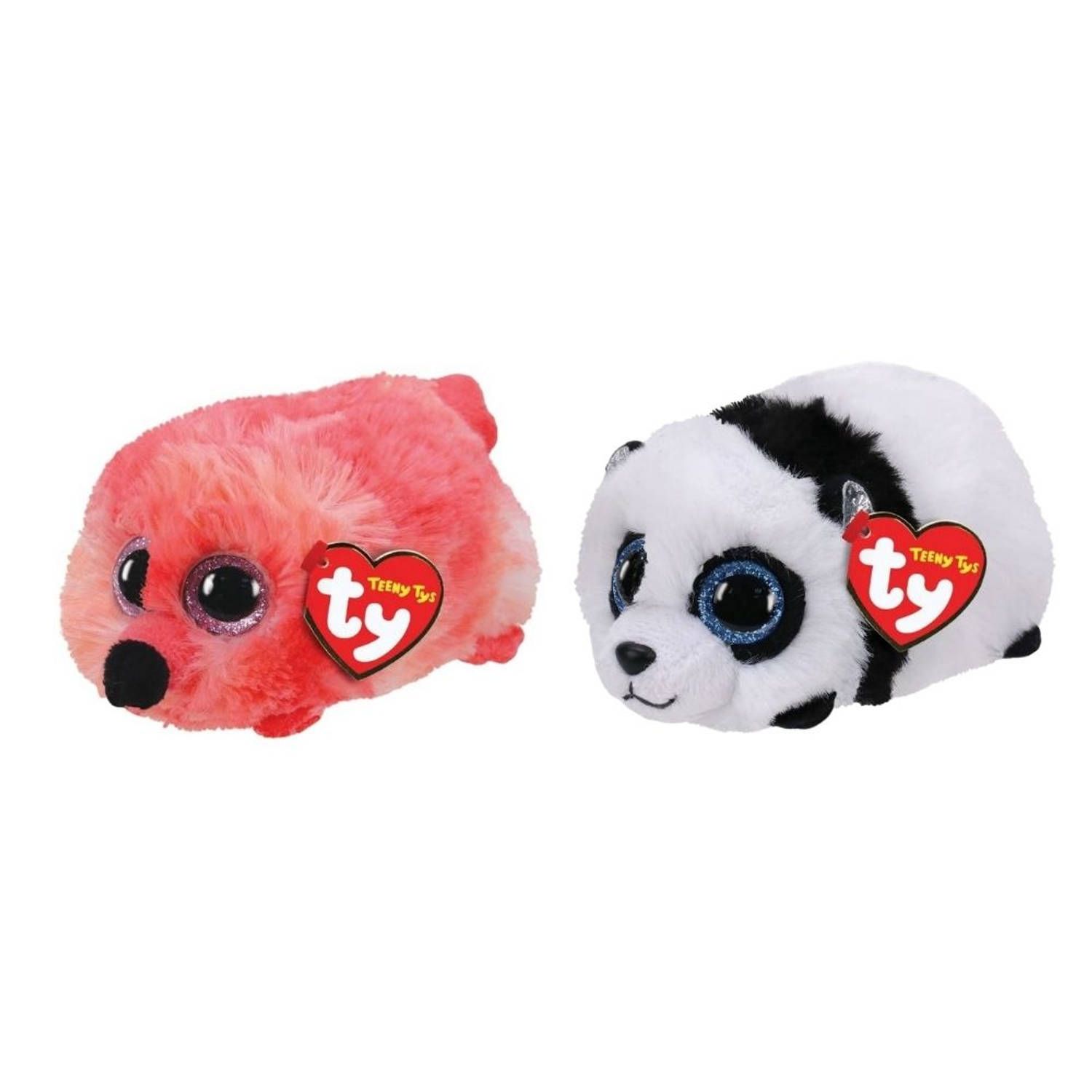 TY - Knuffel - Teeny s - Gilda Flamingo & Bamboo Panda - Meerkleurig