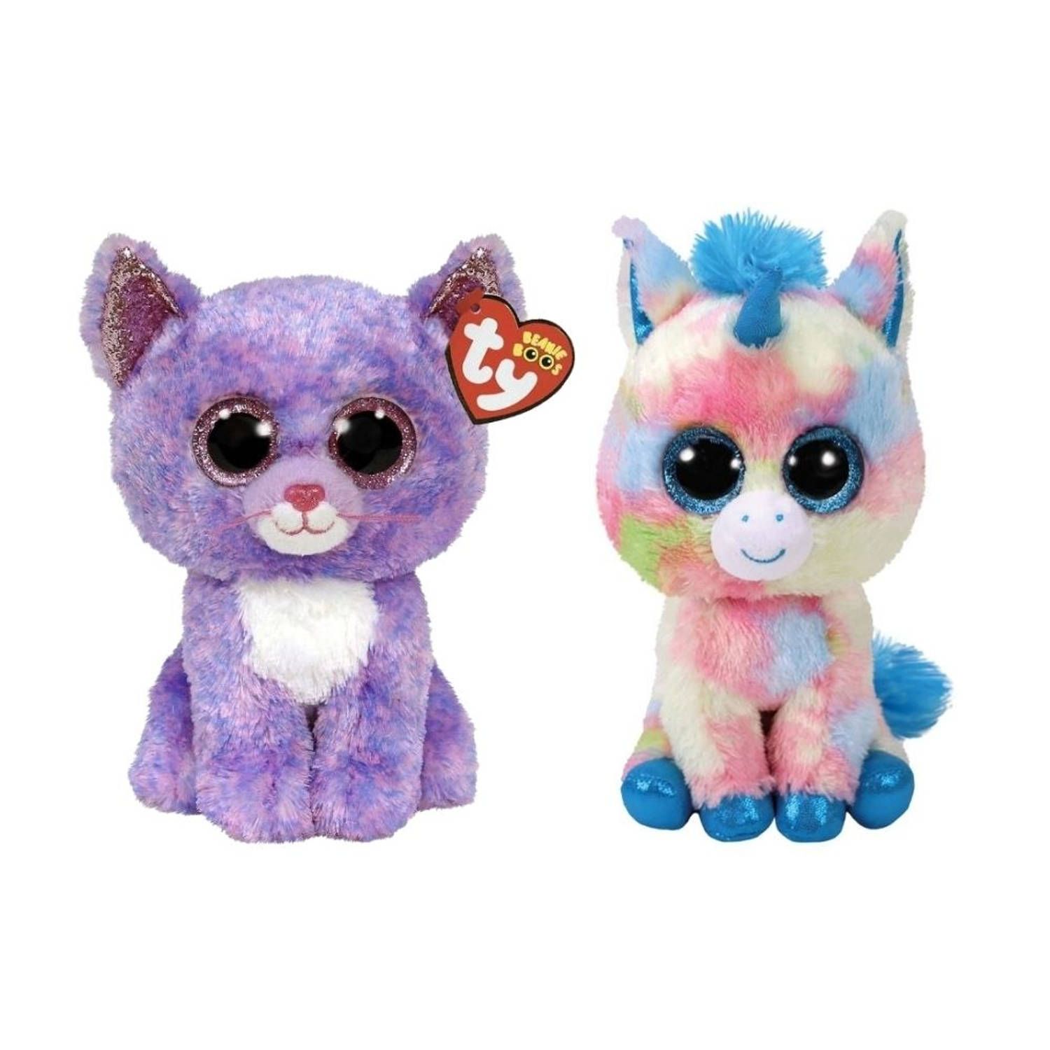 TY - Knuffel - Beanie Buddy - Cassidy Cat & Blitz Unicorn - Meerkleurig