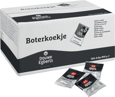 *De koekjes zijn per stuk verpakt in Douwe Egberts folie en worden geleverd in een doos van 150 stuks.