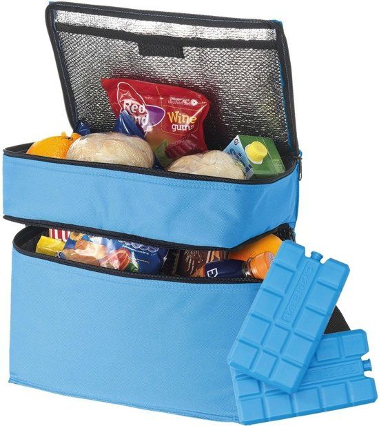 Shoppartners Grote blauwe koeltas met 6x koelelementen set