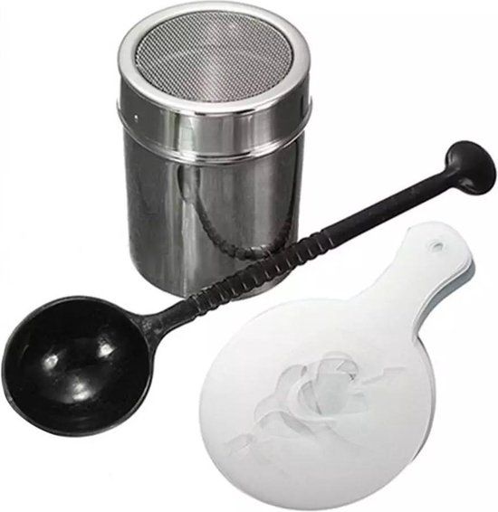 - 1x RVS Cappuccino Set / Cacao Strooier / Koffie Sjablonen Barista Tools