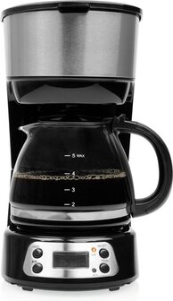 Dit Tristar Koffiezetapparaat heeft een inhoud van 0.75L, waarmee je tot 7 kopjes koffie tegelijk kunt zetten. De roestvrijstalen accenten en de glanzende behuizing geven het apparaat een moderne, luxe uitstraling. Dankzij de glazen kan en de duidelijke indicatielampjes zie je direct of het apparaat aan staat.
