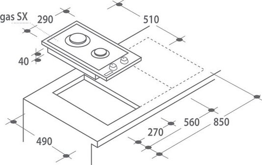 - Candy Timeless CDG 32/1 SPX Roestvrijstaal Ingebouwd Gaskookplaat 2 zone(s)