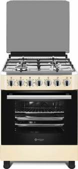 Wiggo WO-E605R(CX) Serie 5 gasfornuis Créme Rvs van 50 cm breed kunt u complete maaltijden bereiden. Wiggo WO-E605R(CX) Serie 5 Gaskookplaat kan een geweldige aanvulling zijn op uw keuken met zijn moderne ontwerp en hoge prestaties. Het stijlvolle Créme Rvs ontwerp past bij elke decoratie. De 4 gaspitten en het grote kookoppervlak maken koken leuker. Het product is gemaakt van hoogwaardige materialen en gaat lang mee. Het elektrische ontstekingssysteem zorgt voor snelle en gemakkelijke bediening. Wiggo WO-E605R(CX) Serie 5 Gaskookplaat maakt uw werk in de keuken gemakkelijker en helpt u heerlijke maaltijden te bereiden. U kunt het product tegen een redelijke prijs en met goede service kopen bij Electropunt. Het fornuis werkt op gas met een ideale elektrische oven. Elektrische vonkontsteking maakt lucifer of aansteker overbodig. Zet je pannen op de ruime 4 kookzones op het fornuis, en geniet van je kookkunst. Wiggo WO-E605R(CX) is een 50cm breed fornuis met een ruim 60cm diep bovenblad. Dankzij de thermokoppel beveiliging wordt de gastoevoer afgesloten zodra de vlam uit is: geen vlam geen gas. De oven (Netto 52 liter) is aan de binnenzijde geëmailleerd voor eenvoudige reiniging. Tevens beschikt de elektrische conventionele oven over vier bakfuncties, waaronder: grill, bovenwarmte, onderwarmte, Conventioneel (boven- en onderwarmte).