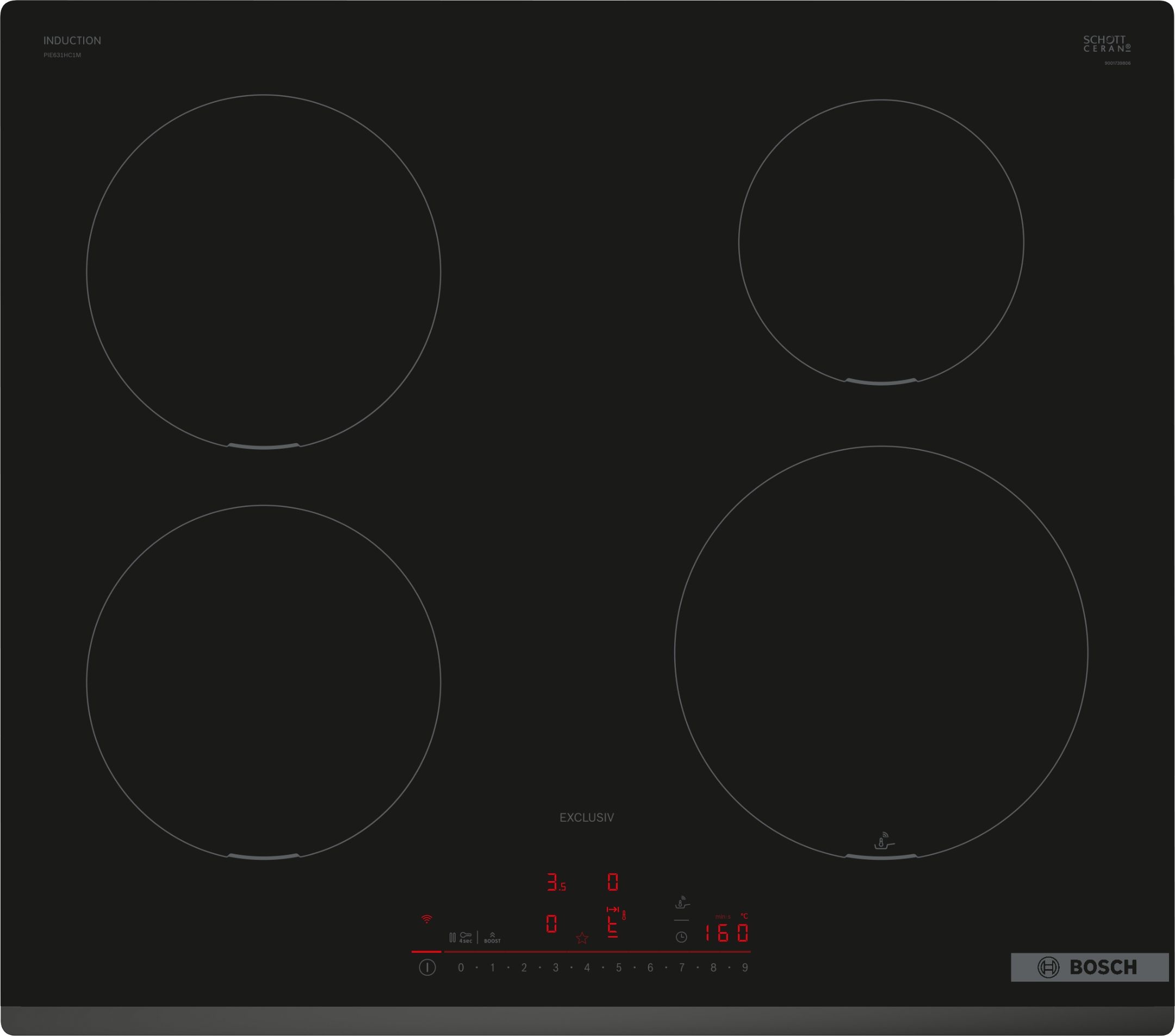 Dit is een inductiekookplaat met vier kookzones die gelijktijdig te gebruiken zijn. Inductie verwarmt de pan via magnetisme, waardoor het snel en efficiënt kookt en het glas rondom minder opwarmt. Dit biedt nauwkeurige warmteregeling en eenvoudige schoonmaak. De zones zijn vast ingedeeld, wat een overzichtelijke kookruimte geeft voor dagelijks gebruik.