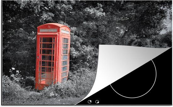 Inductie mat - Zwart-wit foto van een rode en Britse telefooncel in het Verenigd Koninkrijk - Inductie afdekplaat - Keuken