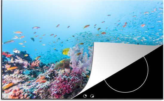KitchenYeah® Inductie beschermer 77x51 cm - Vissen - Koraal - Multicolor - Kookplaten