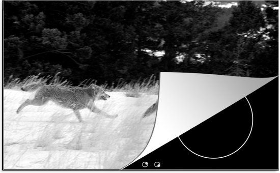 KitchenYeah® Inductie beschermer 77x51 cm - Twee rennende wolven - zwart wit - Inductie kookplaat accessoire - Kookplaten