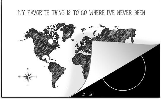 KitchenYeah® Inductie beschermer 77x51 cm - Wereldkaart - Zwart - Wit - Quote - Inductie beschermer - Kookplaten