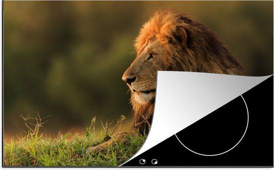 KitchenYeah® Inductie beschermer 77x51 cm - Zonsopkomst - Leeuw - Gras - Inductie kookplaat accessoire - Kookplaten