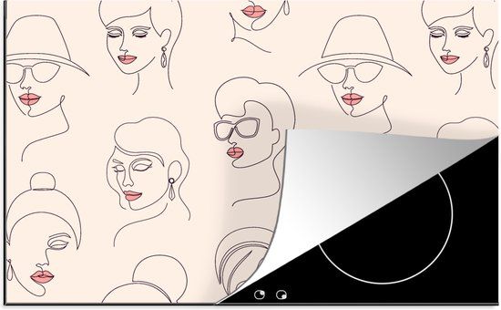 KitchenYeah® Inductie beschermer 77x51 cm - Vrouw - Line Art - Pastel - Kookplaten