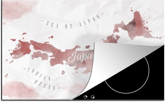 KitchenYeah® Inductie beschermer 77x51 cm - Kaart - Japan - Waterverf - Rood - Inductiebeschermer voor Inductiekookplaat - Kookplaten