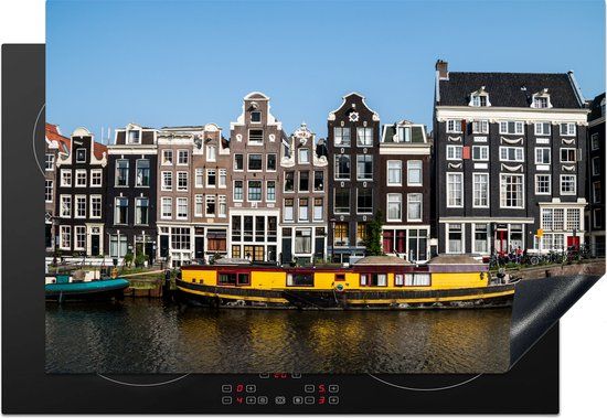 KitchenYeah® Inductie beschermer 77x51 cm - Een gele woonboot in de Amsterdamse gracht - Inductiebeschermer voor inductiekookplaat - Kookplaten