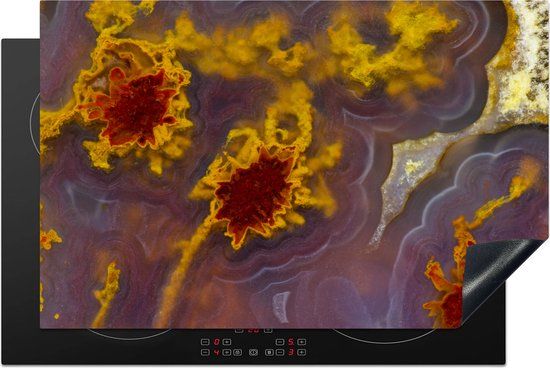 KitchenYeah® Inductie beschermer 80x52 cm - Close-up van een rode met oranje agaat - Inductie kookplaat accessoire - Kookplaten