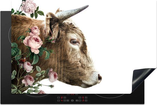 Inductie mat - Schotse Hooglander - Bloemen - Roze - Inductie afdekplaat - Keuken